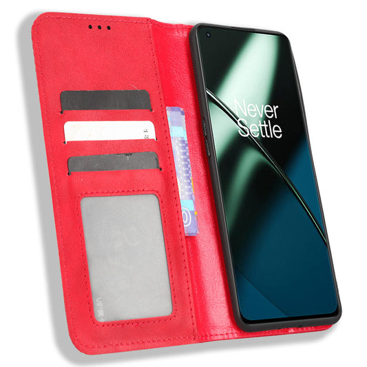 For OnePlus 11R 5G / Ace 2 5G PU Leather Wallet Phone Case Retro Magnetic Closing Stand Cover - Blue