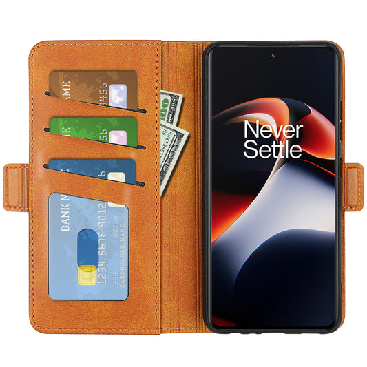For OnePlus Ace 2 5G / 11R 5G Brass Button Decor Leather Phone Cover Stand Wallet Phone Case - Black