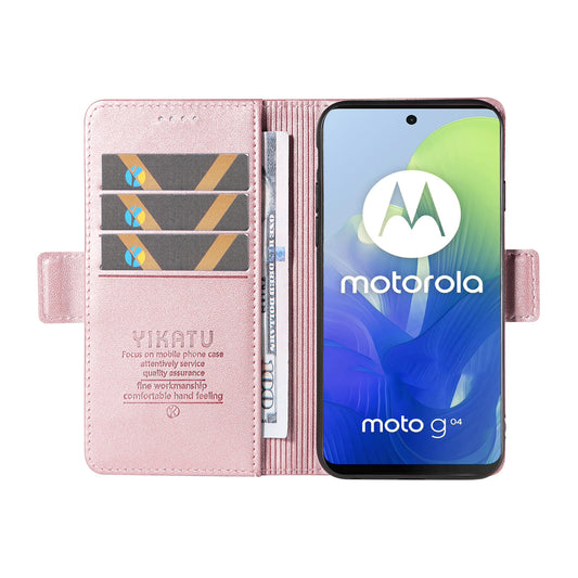 YIKATU YK-003 For Motorola Moto G04 4G / G24 4G Case PU Leather Stand Shockproof Phone Cover - Black