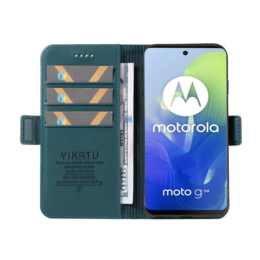 YIKATU YK-003 For Motorola Moto G04 4G / G24 4G Case PU Leather Stand Shockproof Phone Cover - Green