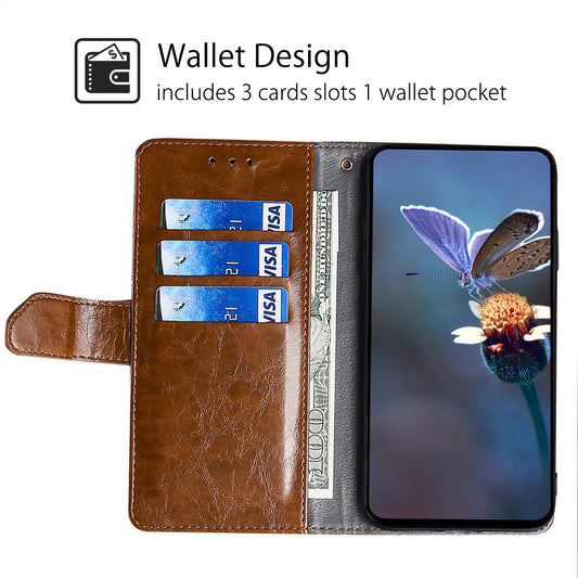 For Motorola Moto G34 5G Case Cowhide Texture Leather Auto Magnetic Closed Phone Cover - Light Brown