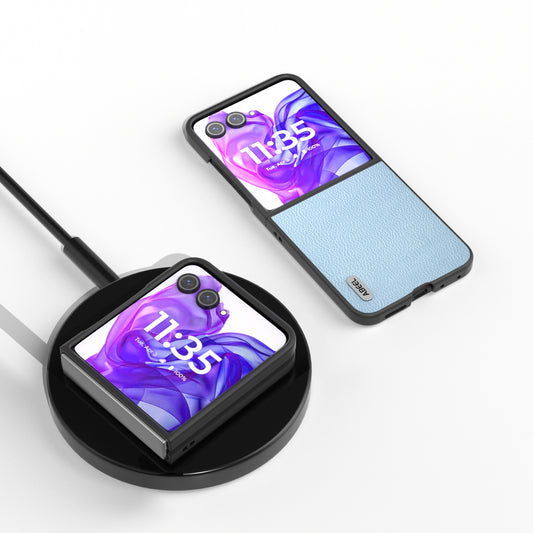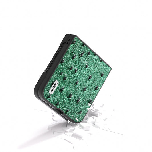 ABEEL For Motorola Razr 50 Ultra 5G Case Ostrich Texture Genuine Cow Leather+PC Phone Cover - Coffee
