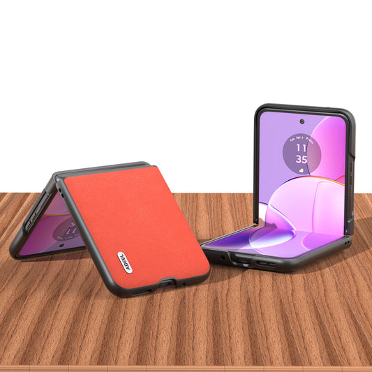 Uniqkart for Motorola Razr 40 5G Drop-proof Phone Cover Shockproof PU Leather+PC Phone Case - Orange