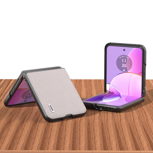 Uniqkart For Motorola Razr 40 5G Wood Texture Phone Case PU Leather Coated PC Fall-proof Cover - Red