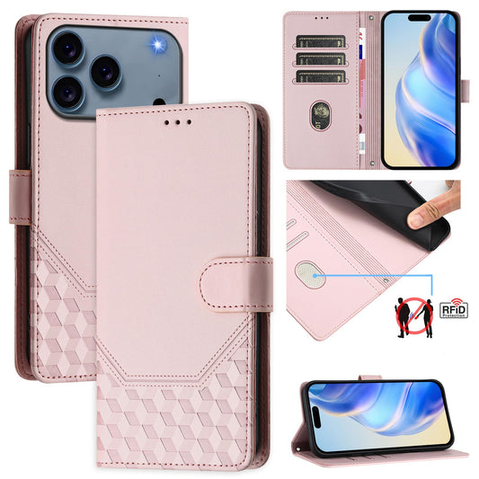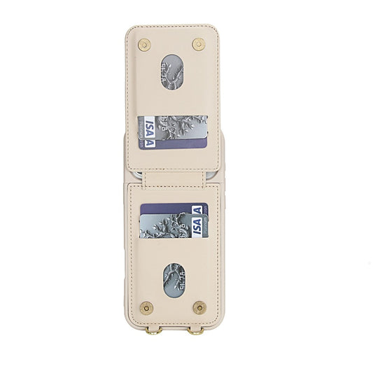 For iPhone 17 Pro Max Case Kickstand Card Slots Leather Coated TPU Cover with Shoulder Strap - Beige
