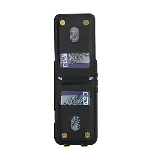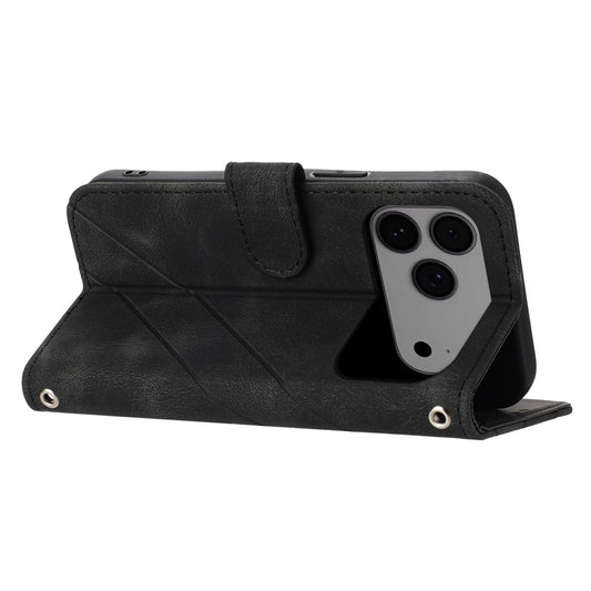 For iPhone 17 Pro Max Case Kickstand Card Slots Leather Coated TPU Cover with Shoulder Strap - Black