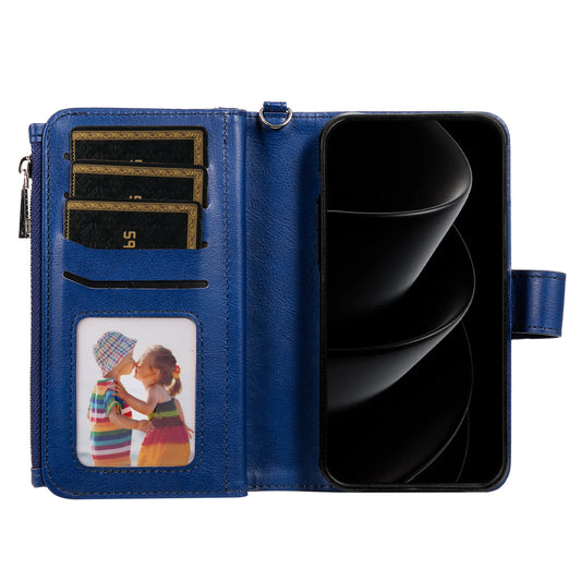 For iPhone 17 Pro Max Magnetic Leather Case Mobile Cover with Detachable Zipper Wallet Strap - Black