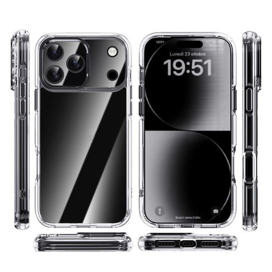 IPAKY For iPhone 17 Pro Max TPU Case Carbon Fiber Texture Phone Cover Metal Lens Frame - Desert Gold