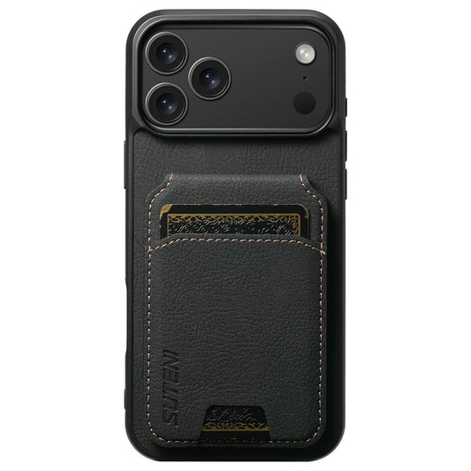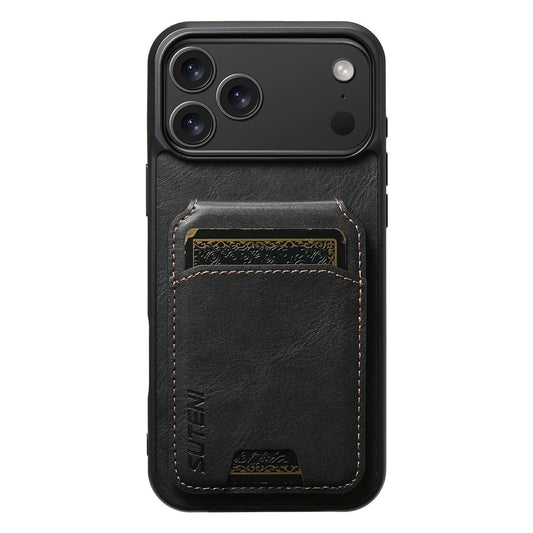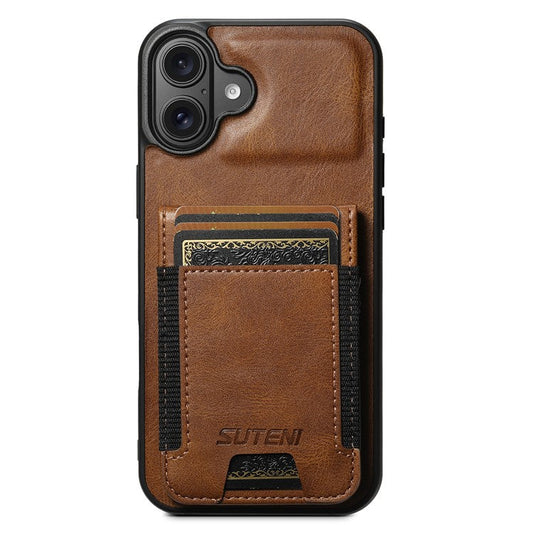 SUTENI H02 For iPhone 16 Plus Case Waxy Texture Leather+TPU Card Slots Kickstand Phone Cover - Black