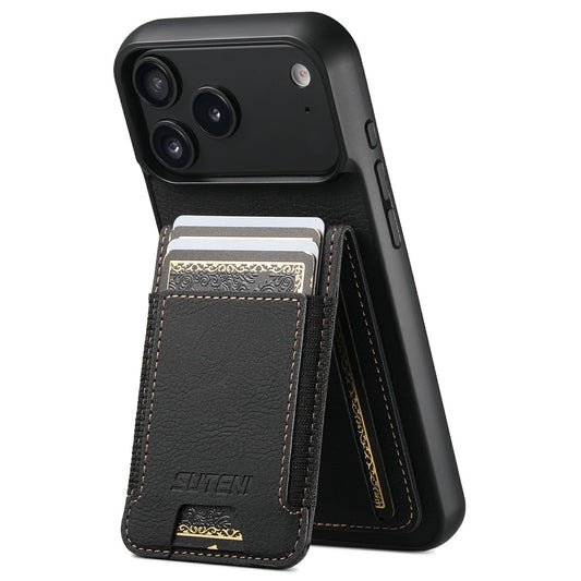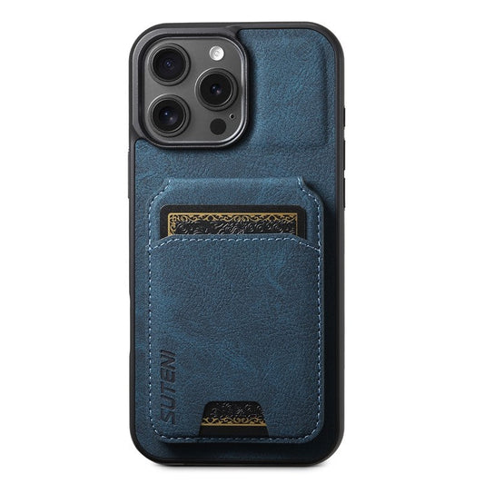 SUTENI H02 For iPhone 17 Pro Max Case Card Slots Kickstand Litchi Texture Leather + TPU Cover - Blue