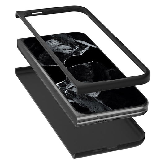 For Google Pixel Fold 2 Case Litchi Texture Leather+PC Phone Cover with Tempered Glass Film - Purple