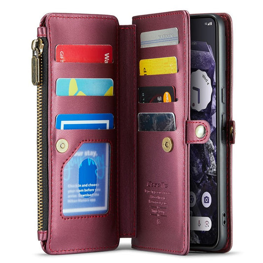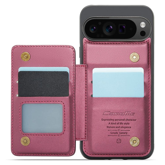 CASEME C22 Series For Google Pixel 9 Pro XL Case Leather+TPU Cover RFID Blocking Card Slots - Purple