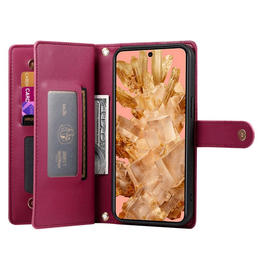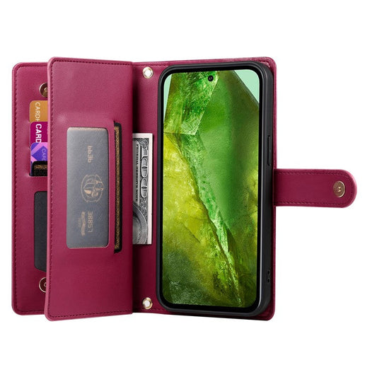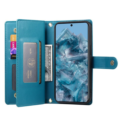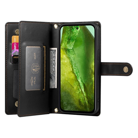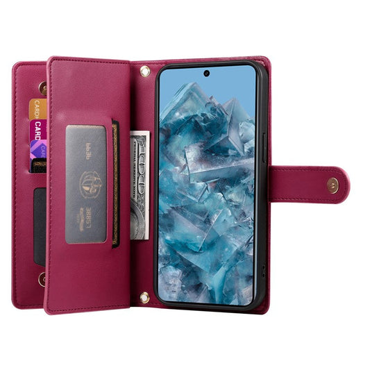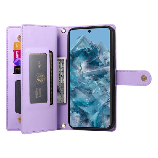 DF-011 For Google Pixel 8a Case Zipper Pocket Stand Leather Phone Cover with Shoulder Strap - Purple
