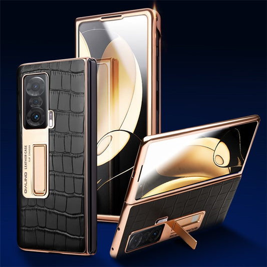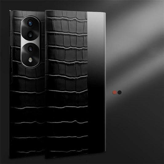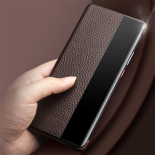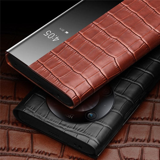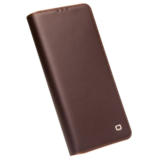 QIALINO for Honor Magic4 Pro 5G Genuine Cow Leather PC Phone Cover View Window Folio Flip Case - Red