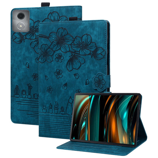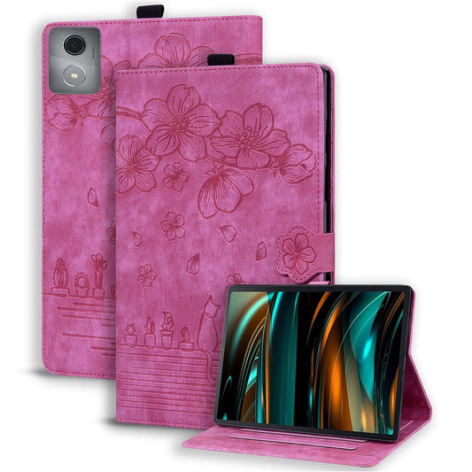 For Lenovo Tab M11 Plus / Tab K11 Plus Case Leather Stand Tablet Cover Flower Cat Card Slots - Green