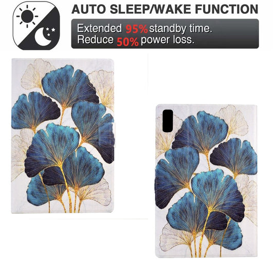 For Lenovo Tab M9 TB-310FU PU Leather Tablet Case A4 Pattern Printing Stand Card Holder Cover - Leaf