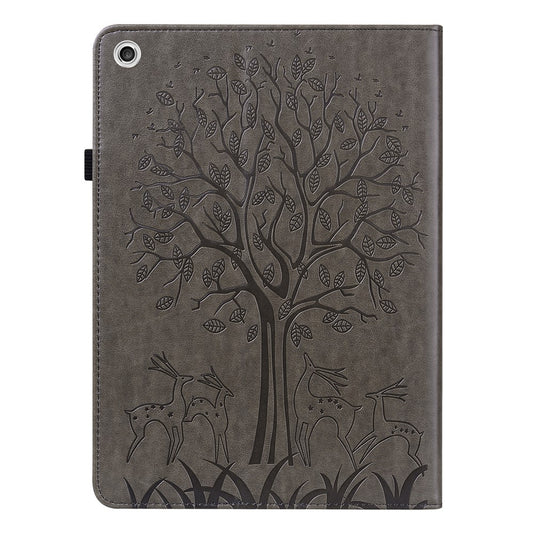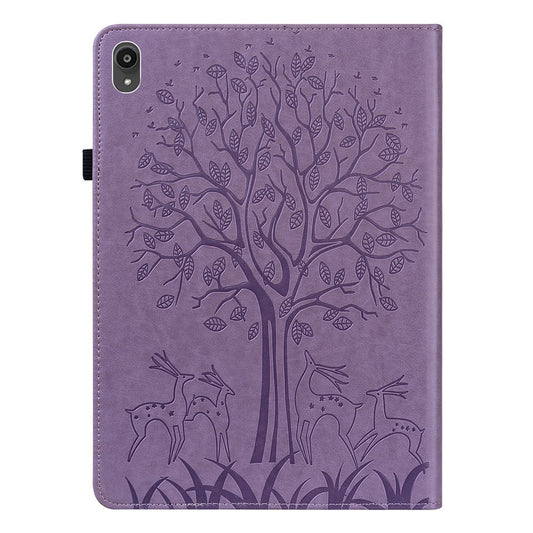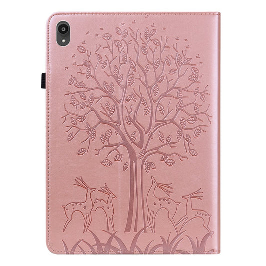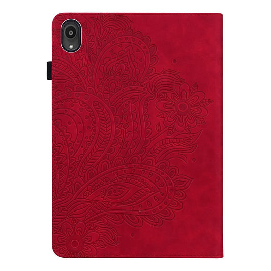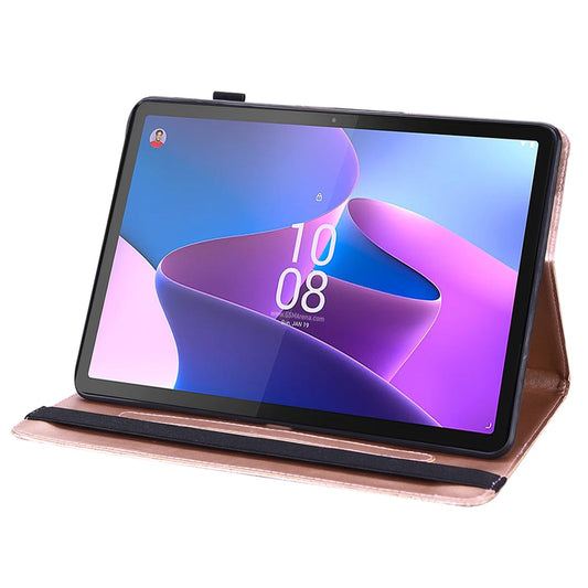 Imprinted Flower Pattern Leather Wallet Stand Tablet Protective Case for Lenovo Tab M10 Plus - Brown
