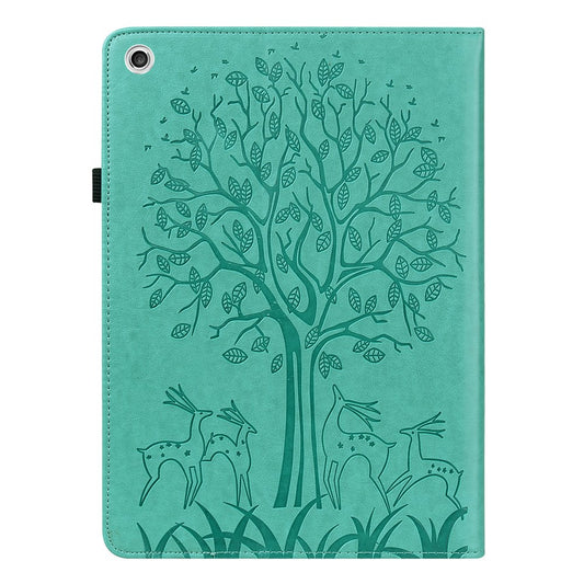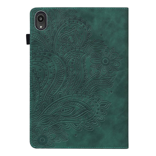Imprinted Flower Pattern Leather Wallet Stand Tablet Protective Case for Lenovo Tab M10 Plus - Green