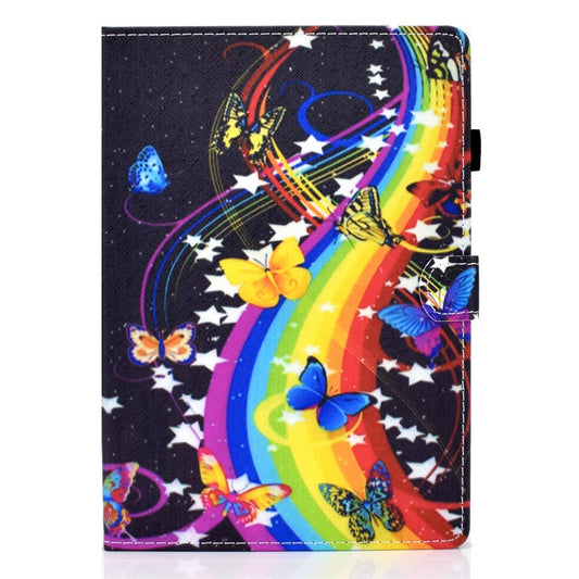Pattern Printing Leather Card Holder Tablet Case for Lenovo Tab M10 TB-X605F - Rainbow and Butterfly