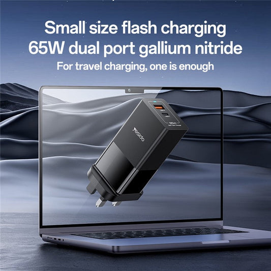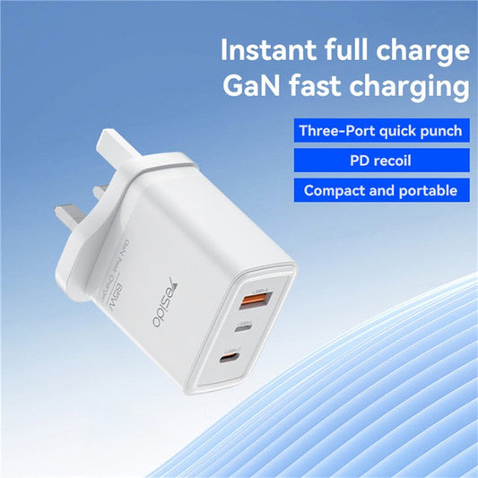 YESIDO YC88 Digital Display Wall Charger 2 Type-C + 1 USB-A 30W Phone Fast Charging Adapter, UK Plug