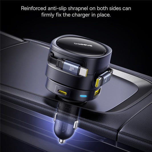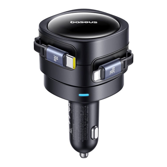 BASEUS Enjoyment Pro 60W Car Charger Type-C Port Power Adapter with Retractable Type-C Cable - Black
