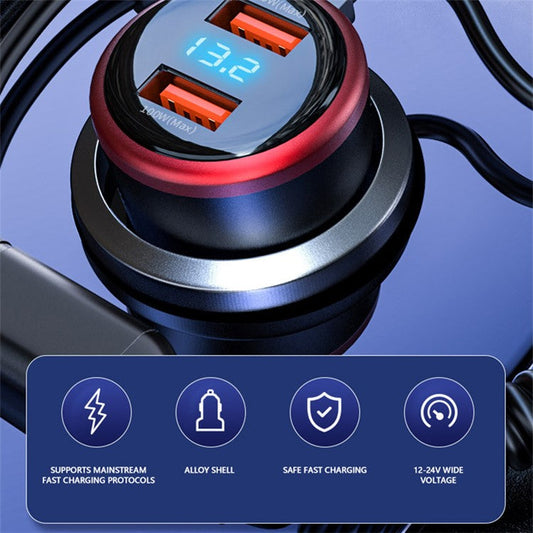 3-in-1 Retractable Car Charger 12-24V Fast Charging Cigarette Lighter Plug Adapter (8th Gen) - Black