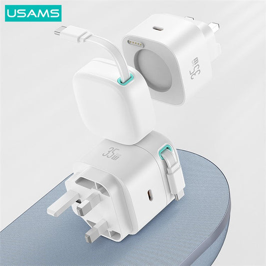 USAMS US-CC213 C40 165W Quick Charging Adapter Digital Display 2*Type-C 3*USB Car Charger with Cable