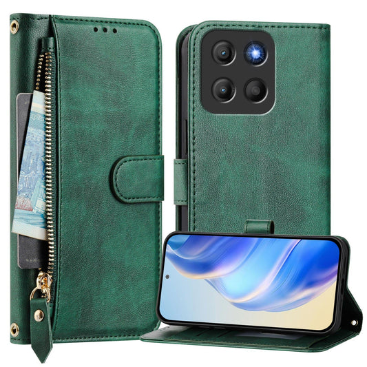 For Motorola Moto G15 4G Leather Case Splicing Stitching Wallet Stand Phone Cover with Strap - Green