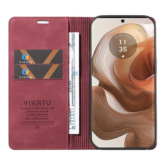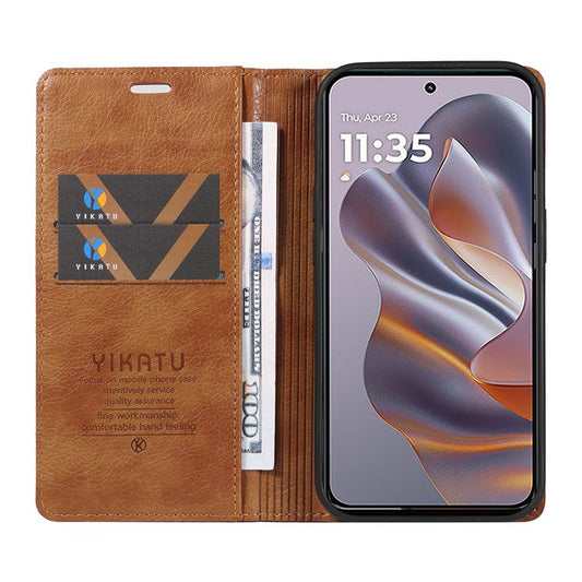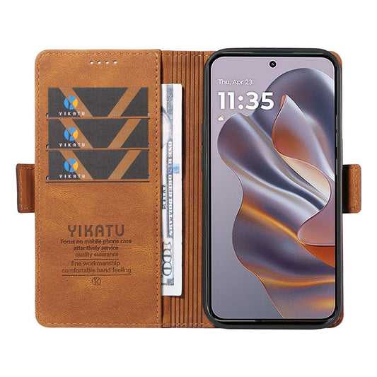 YIKATU YK-005 For Motorola Moto G75 5G Case PU Leather Wallet Phone Cover Skin Touch Feeling - Brown