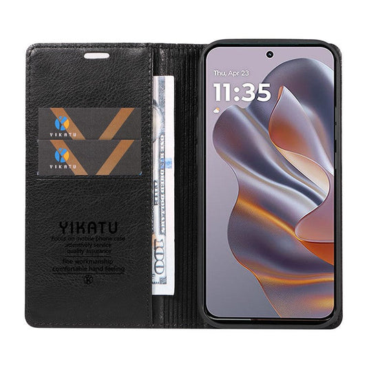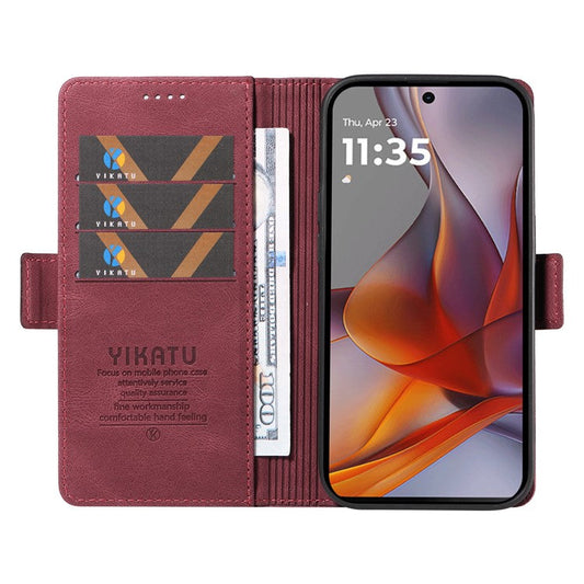 YIKATU YK-005 For Motorola Moto G75 5G Case PU Leather Wallet Phone Cover Skin Touch Feeling - Black