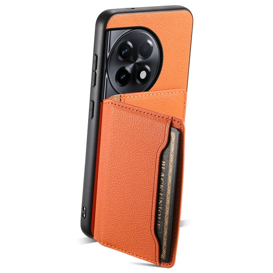 For OnePlus Ace 2 5G / 11R 5G Case Calf Texture Leather Coated PC+TPU Cover with Card Slots - Orange