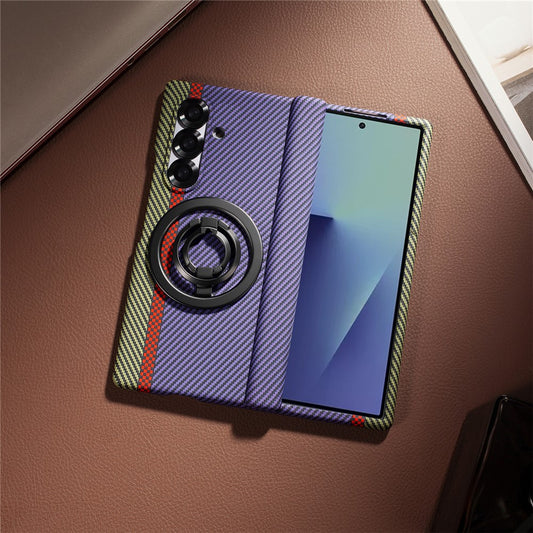 For Samsung Galaxy Z Fold7 5G Case Ring Holder Kickstand Hard PC Phone Cover with Screen Film - Blue