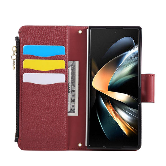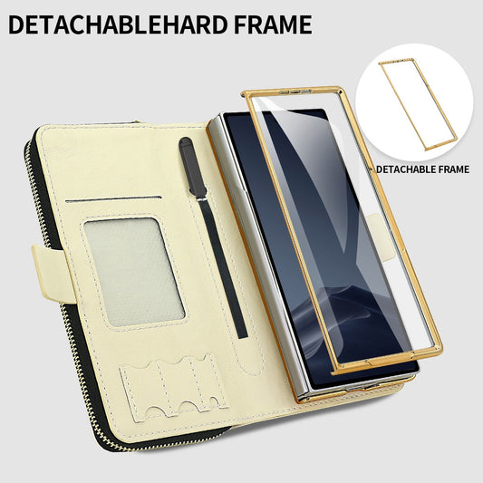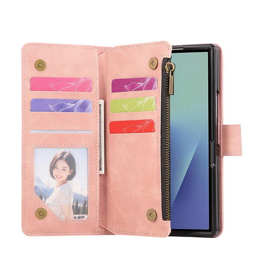 For Samsung Galaxy Z Fold7 5G Case Zipper Wallet Leather Phone Cover with Shoulder Strap - Baby Blue