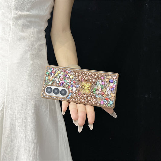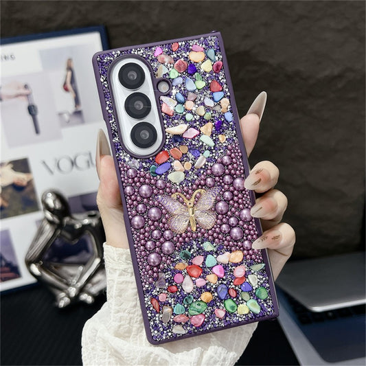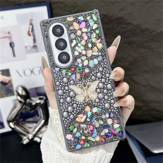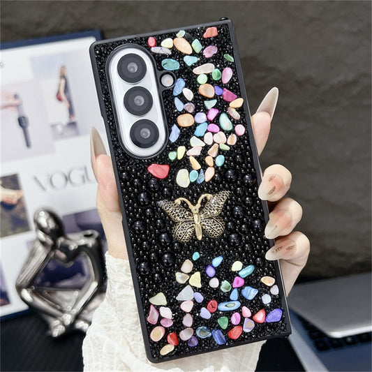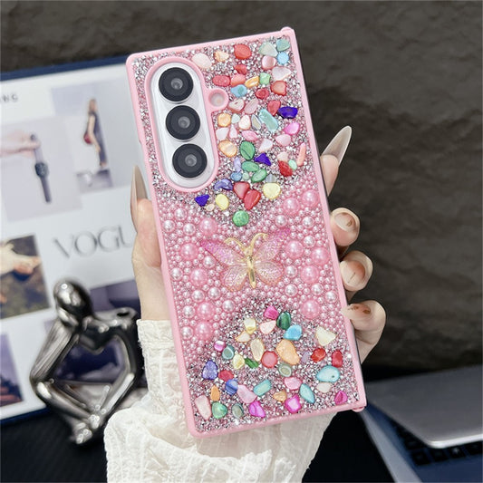 For Samsung Galaxy Z Fold7 5G PC Phone Case Colorful Rhinestone Butterfly Decor Mobile Cover - Black