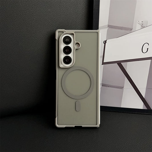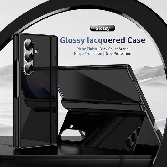 For Samsung Galaxy Z Fold7 5G PC Phone Case with Back Cover Kickstand and Tempered Glass Film - Grey