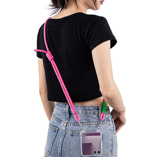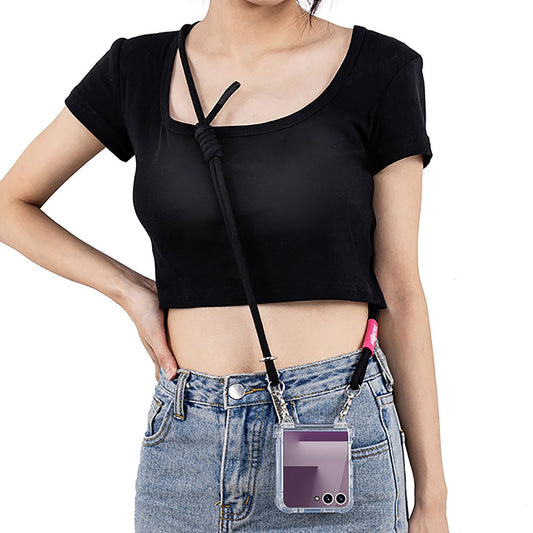 GKK For Samsung Galaxy Z Flip7 5G Clear Case Airbag Hinge Protector PC Phone Cover with Strap - Pink