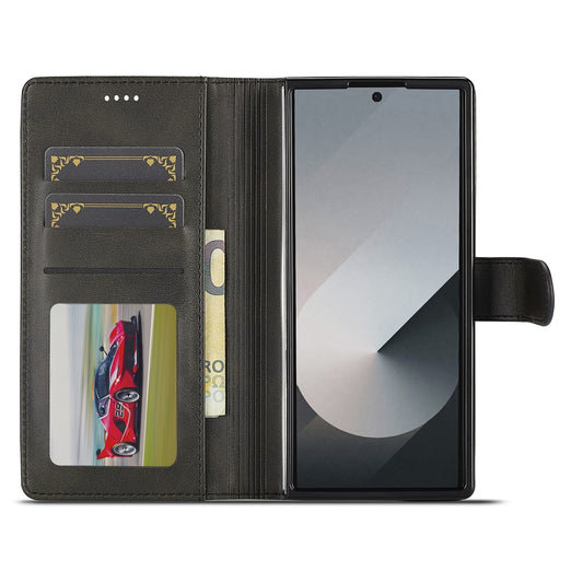 LC.IMEEKE For Samsung Galaxy Z Fold7 5G Case Calf Texture PU Leather Stand Wallet Phone Cover - Grey