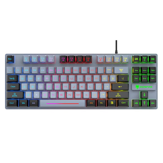 XUNFOX K82 94 Keys Gaming Wired Keyboard Mixed Color Backlit USB Keyboard with Kickstand - Lake Blue