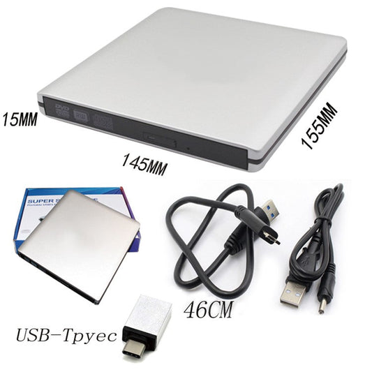 External DVD CD Drive Portable Aluminum Alloy Rewriter Burner High Speed Data Transfer for Laptop PC