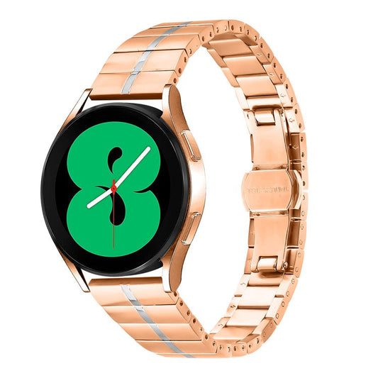 For Huami Amazfit GTS 3 Line Design Wrist Band 1-Bead Stainless Steel Watch Strap - Rose Gold+Silver