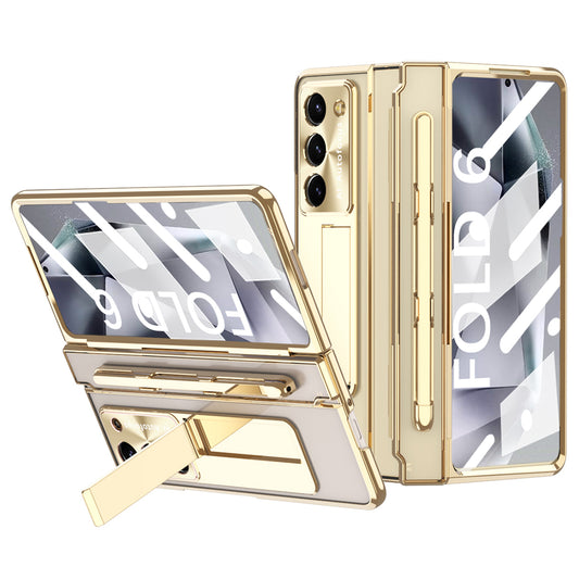 For Samsung Galaxy Z Fold6 5G Case Skin-touch PU Leather View Window Phone Cover - Brown