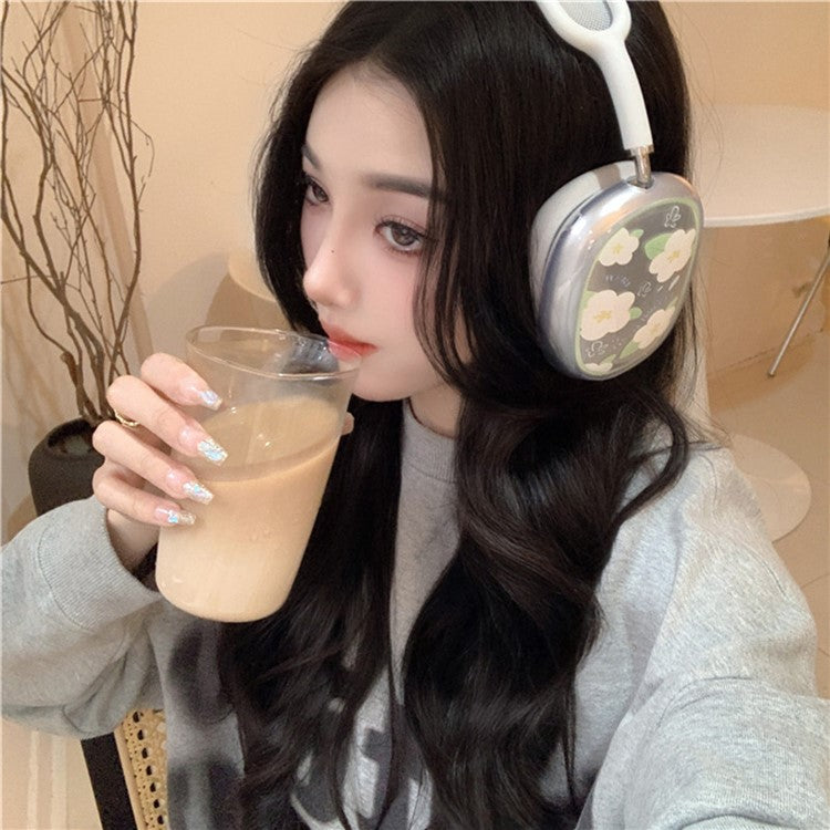 1Pair Protective Case for AirPods Max 2024 (USB-C) / Max Headphone Drop-Resistance TPU Sleeve - Green Leaf and Flower