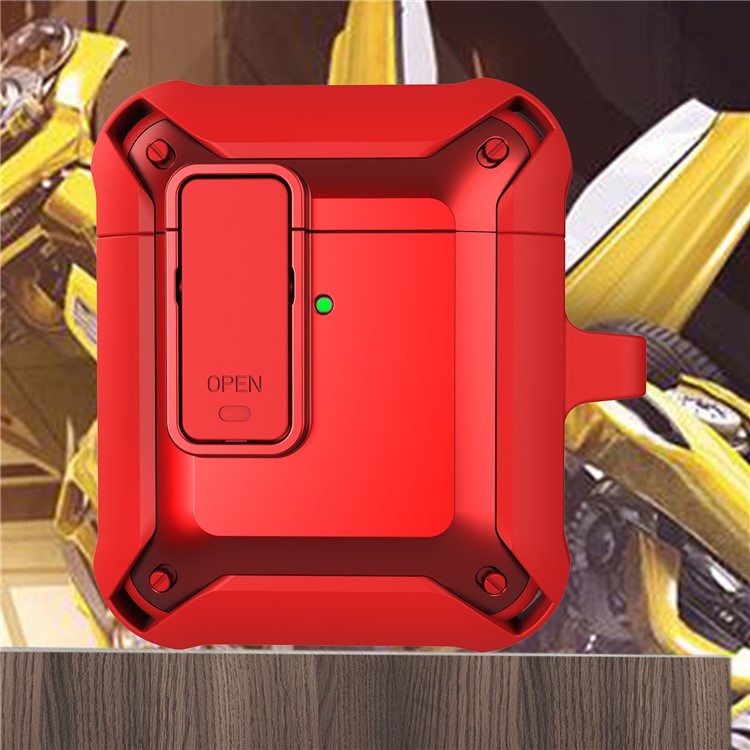2 in 1 TPU + PC Anti-drop Earbuds Case Protector Shock-resistant Portable Earphone Charging Case Cover with Lock/Buckle for AirPods 1/2 - Red