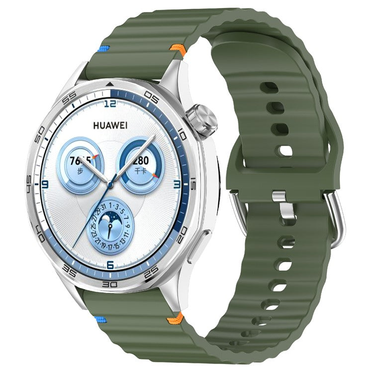 20mm Silicone Watch Band Stitch Line Wave Design Wrist Strap for Huawei / Samsung / Garmin Smartwatches - Army Green