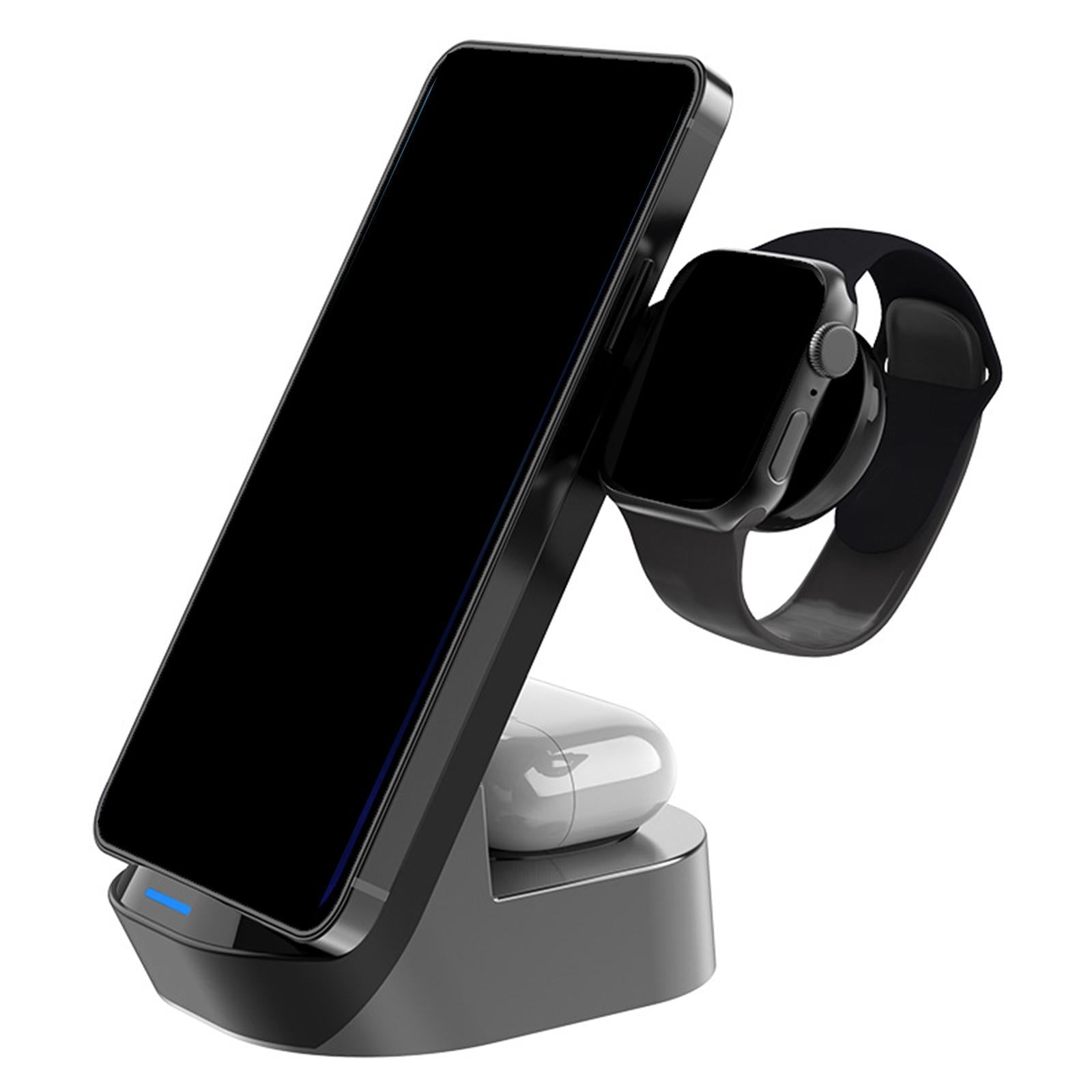 15W fast Charging 3 in1 wireless charger can save you space on your desk. This charging dock station is suitable for both home and office use.