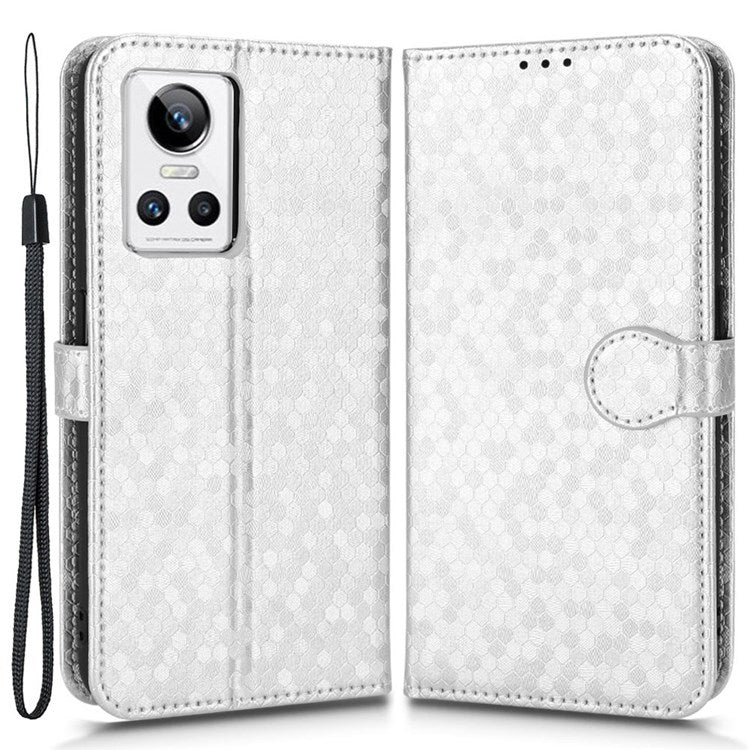 Anti-Drop Case for Realme GT Neo3 PU Leather Wallet Phone Case Dot Pattern Imprinted Scratch-Proof Folio Flip Cover with Strap - Silver