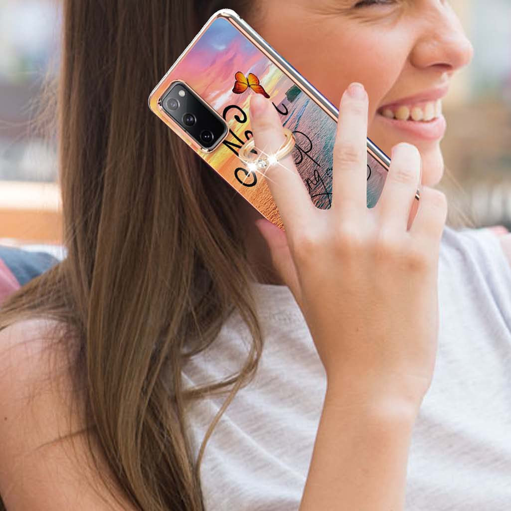 Anti-Drop Durable Shockproof Anti-Yellow IMD Light Marble Pattern TPU Phone Case with Ring Kickstand for Samsung Galaxy S20 FE 2022/S20 FE 4G/S20 FE 5G/S20 Lite - Never Stop Dreaming