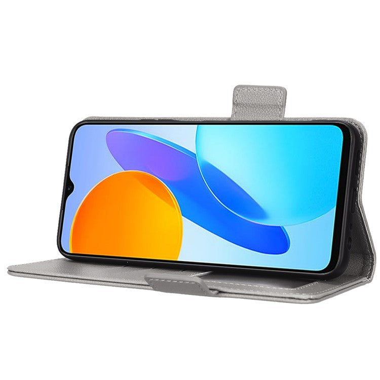 Anti-drop Litchi Texture Phone Cover for Honor 70 Lite 5G / X6 4G / Honor Play6C / X8 5G PU Leather Dual Magnetic Clasp Flip Wallet Case - Grey