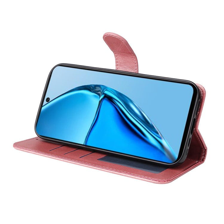 Anti-Drop PU Leather Phone Case For Infinix Hot 20 4G, Calf Texture Magnetic Flip Wallet Stand Protective Phone Cover with Strap - Rose Gold