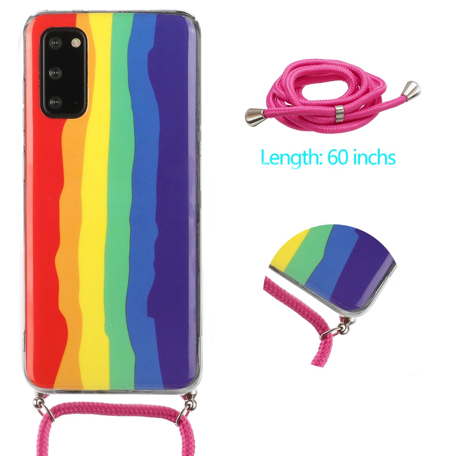 Anti-drop Rainbow Pattern IMD Soft TPU Protective Cover with 60 Inches Strap for Samsung Galaxy S20 FE/S20 FE 5G - Red and Blue